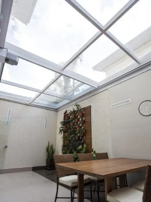 A cobertura de vidro deslizante é uma ótima opção para quem busca elegância e sofisticação, visto que o revestimento possui uma estética agradável e moderna. Com um design inovador, a estrutura controla a entrada da luz natural, fato que colabora positivamente para a redução do consumo de energia elétrica. Dessa forma, o cliente pode aproveitar o máximo dos raios solares e ter total controle da quantidade de luz, já que a estrutura é retrátil, com movimentos manuais ou automáticos.